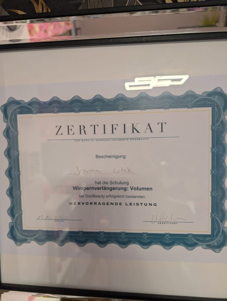 Ich lege großen Wert auf kontinuierliche Weiterbildung und höchste Fachkompetenz. Alle Behandlungen werden von mir persönlich durchgeführt, gestützt auf diverse Zertifikate und Schulungen, die meine Expertise im Bereich Wimpern, Beauty und Hautpflege unterstreichen. So können Sie sich auf professionelle Qualität und maximale Sicherheit verlassen.
